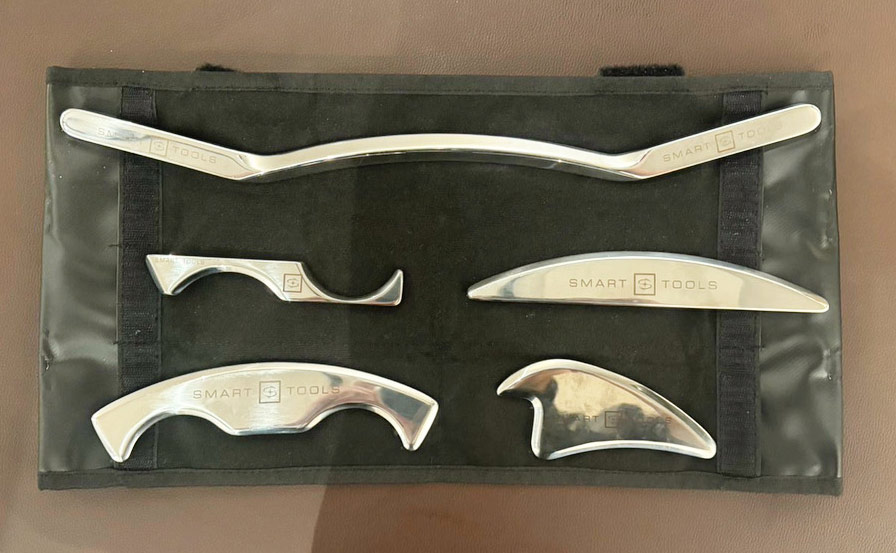当店ではIASTM(Instrument Assisted Soft Tissue Mobilization)というステンレス製のツールを用いて筋膜リリースを行います。 医療用メスと同じ素材のため、金属アレルギーの方にも対応しております。筋膜リリースを行う事で